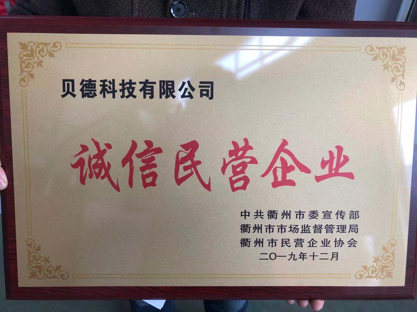 貝德科技被評選為“衢州市誠信民營企業(yè)”既是對企業(yè)誠信建設成績的充分肯定,也是市場監(jiān)督管理局近年來大力倡導推進企業(yè)信用體系建設結出的碩果。